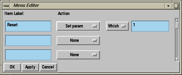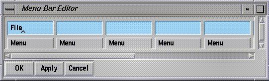 Select Menu Bar from the Edit menu on the Control Panel Editor. The Menu Bar Editor appears (see Figure 1-17).