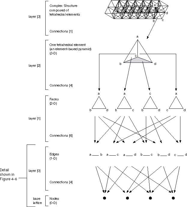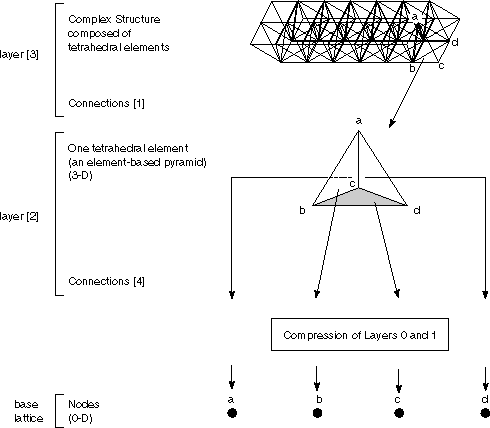 The count is an integer that indicates how many layers make up the pyramid, and thus its dimensionality. Layers are numbered from 0 to count-1, excluding the baseLattice. For example, a pyramid with count=4 would represent a collection of many 3D elements (see Figure 4-3).