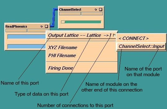 Modules accept data on their input ports, and pass it along via their output ports after they have modified it. When a module acts on data, or executes, it is said to fire. A module may be turned off, or disabled; and it can be fired on a computer other than the one where you are running the Map Editor.