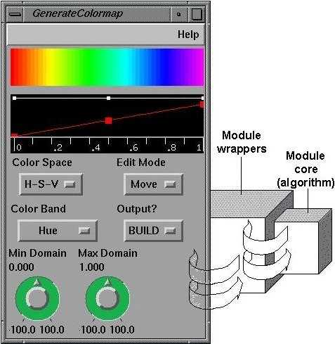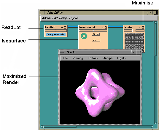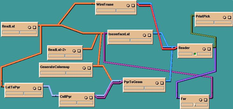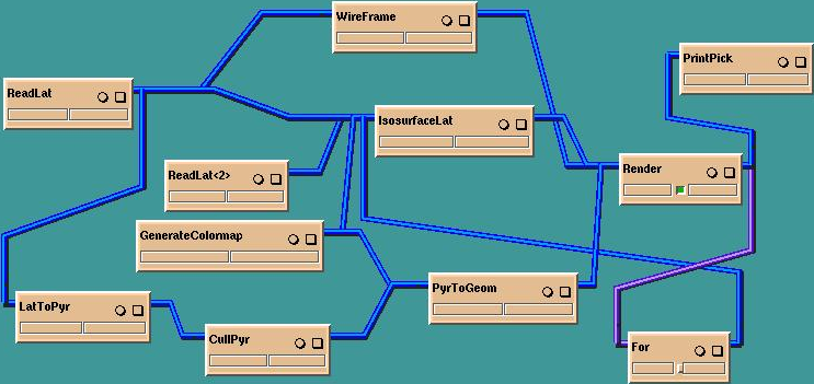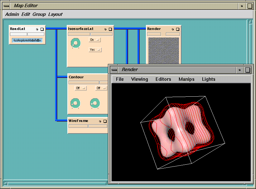 Maps can be used to perform a variety of tasks, for example, generating a visual image from a specific dataset. A patient may arrive at a medical clinic with an injured leg. The doctor generates a 3D CT scan, which shows a compound fracture of the femur. The CT scan data can be fed into an IRIS Explorer map and visualized as a 3D or volume image of the bone. The doctor may extract a 2D slice from the CT scan data along a plane close to the break in the bone. Then, if necessary, another slice can be taken from a slightly different angle for further elucidation. In this way, the doctor acquires a unique understanding of the fracture, which can help when deciding on an appropriate treatment.