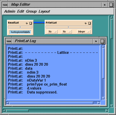 Figure 2-4 shows the map you should see on your screen. It visualizes the data in the file $EXPLORERHOME/data/lattice/testVol.lat.