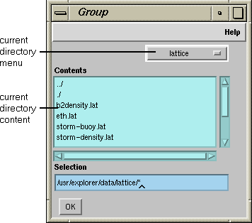 If your selection is a directory, the file browser displays its contents in the Contents window and its path and name in the Selection window.