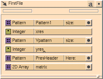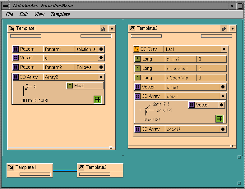 A small icon (see Figure 7-2) to the left of the maximize button (top right corner of the template) indicates the file format you selected. See Figure 7-4 for an example which includes an input ASCII template and an output IRIS Explorer template.