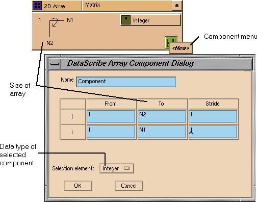 The Component Menu button (see Figure 7-6) lets you list an isolated segment of an array as a separate item, which can then be connected to other templates. For example, you can list all the x coordinate values of a 3D dataset, or all the pressure values in a pressure/temperature dataset. For information on isolating the fragments, see Section 7.1.11.